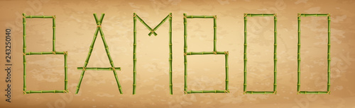 Word Bamboo Made Of Realistic Green Sticks Poles On Old